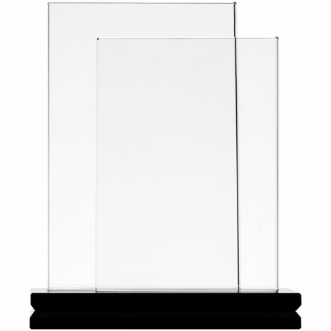 Стела Twinstand воплощает собой чистый минимализм, помноженный надвое, — для усиления эффекта и создания визуального объема и основательности. Легкая прозрачная вставка из двух листов боросиликатного стекла — идеальный баланс устойчивости и легкости, который позволит отметить вдвое больше заслуг или создать оригинальный запоминающийся дизайн с помощью креативного нанесения.