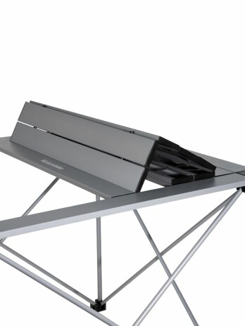 Его складная конструкция облегчает хранение и транспортировку: стол легко убирается в чехол и свободно размещается в багажнике автомобиля. Легкая и прочная столешница в сочетании с алюминиевым каркасом выдерживают значительные нагрузки, обеспечивая долговечность и надежность в любых условиях.В комплект входит чехол из полиэстера.