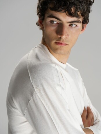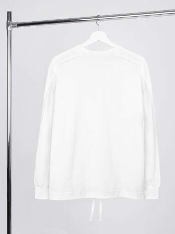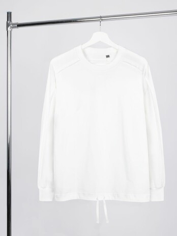 Свитшот унисекс оригинального пошива вдохнет новую жизнь в повседневный гардероб и добавит стильную нотку легкой небрежности в образ. Особая конструкция, где часть деталей — плечи и рукава — вывернута наизнанку, создает необычный притягательный эффект.