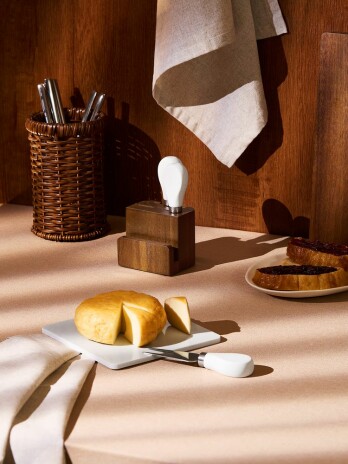 - Размеры: доска: 15х15х0,6 см; подставка: 8х7х6,3 см; вилка для сыра: 13х3х1,7 см; нож-лопатка: 12,3х3х1,7 см; листовидный нож: 12х3х1,7 см; упаковка: 15,8х7,6х15,5 см