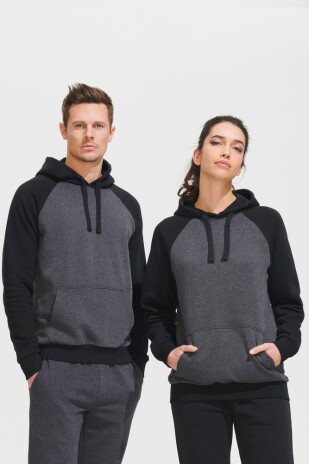 Двухцветная утепленная толстовка унисекс с рукавами реглан и карманом-кенгуру.