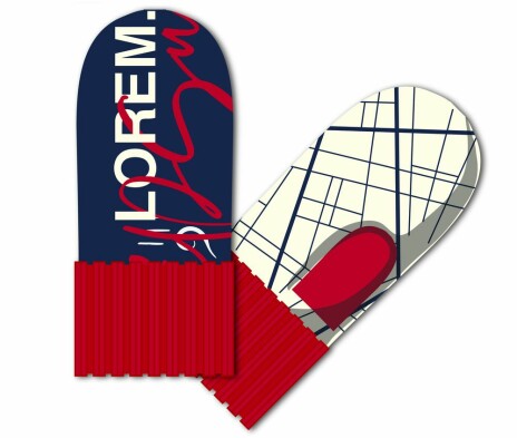Варежки с вывязанным логотипом и индивидуальным рисунком в фирменной цветовой гамме.