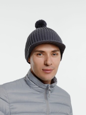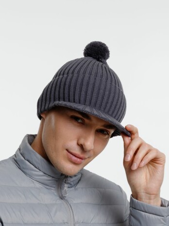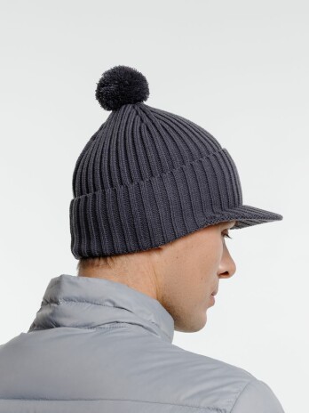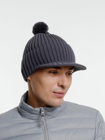 Вязаная шапка с козырьком Peaky, серая (антрацит)