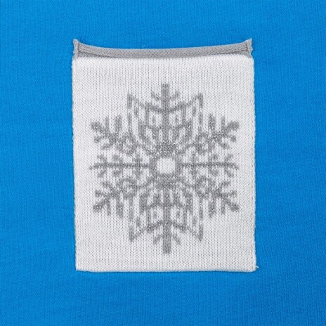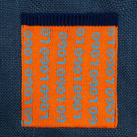 Вязаный карман с вывязанным логотипом или индивидуальным узором в фирменной цветовой гамме.