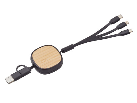 Универсальный кабель с ретрактором 3-в-1 «Retrax» — это стильное и практичное решение для зарядки и передачи данных на ходу. Компактный корпус из экологичного бамбукового покрытия сочетается с удобной системой автоматического складывания, что делает его идеальным спутником в путешествиях, на работе и в повседневной жизни. Кабель оснащён тремя разъёмами: USB-A, Micro-USB и Lightning, обеспечивая совместимость с широким спектром устройств — от смартфонов до планшетов и других гаджетов. Благодаря прочной конструкции и элегантному дизайну, «Retrax» станет незаменимым аксессуаром для тех, кто ценит функциональность и стиль. Поставляется в фирменной коробке bamboo collection. • 3 в 1: один кабель — три разъёма (USB-A, Micro-USB, Lightning) для универсальной зарядки. • Входной разъем 2 в 1 – USB-C и USB-A • Автоматический ретрактор: кабель легко вытягивается и возвращается в корпус — всегда под рукой, но не мешает. • Компактный и стильный: эргономичный корпус с натуральным бамбуковым покрытием — сочетание технологий и природы. • Удобно для путешествий: миниатюрный размер позволяет легко помещать кабель в карман, сумку или рюкзак.