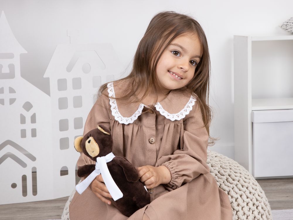 Выполнен из шелковистого велюра, такого нежного, что игрушку не хочется выпускать из рук.