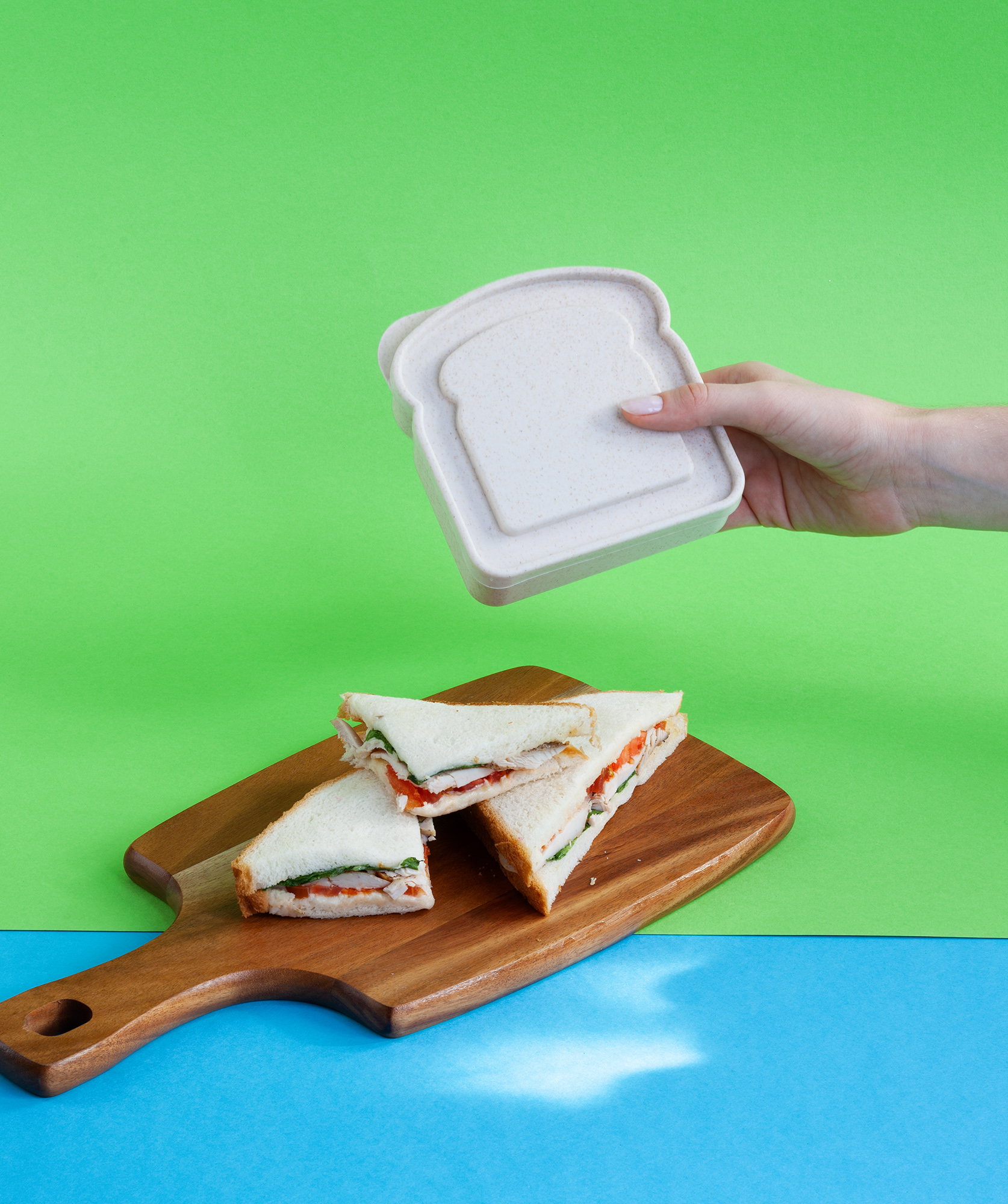 Ланч-бокс для сэндвичей 450 мл изготовлен из бамбукового волокна и пищевого полипропилена.