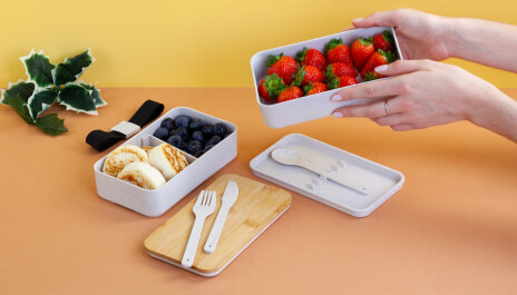 Контейнер для ланча "Natural" расширяет серию товаров из натуральных компонентов (пшеничное волокно), которые позволяют вдвое сократить использование пластика.
