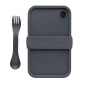 Стильный и прочный ланчбокс поможет с легкостью взять с собой здоровый перекус. Достаточно вместительный для сэндвичей и салатов. Кроме того, в нем можно разогреть второе блюдо, например, пасту или рис. Сделан из PP, подходит для посудомоечной машины и микроволновой печи. В комплекте идут ложка-вилка и эластичный ремешок. Объем контейнера: 1,2 л.