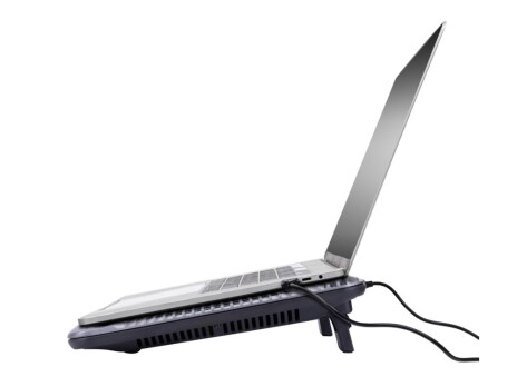 Охлаждающая подставка с 2 встроенными тихими вентиляторами создана для комфортной работы на ноутбуке и защиты от перегрева. • Подставка RIVACASE охлаждает ноутбук, что помогает уменьшить количество сбоев. • Питание от USB порта. • Комфортная эргономика: 2 угла наклона. • Упор для ноутбука с противоскользящей накладкой. • Нескользящие ножки. • 2 малошумящих вентилятора. • Скорость вращения вентиляторов : до 1200 об/мин. • Диаметр вентиляторов : 110 мм.