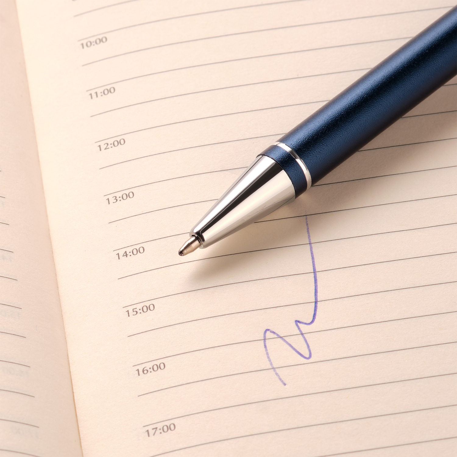Классическая ручка эргономичной формы выполнена в строгом стиле. Декоративные детали в виде хромированного кольца у основания и клипа придают ручке элегантность.