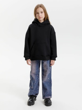 Детское худи унисекс со спущенным плечом и карманом-кенгуру.
