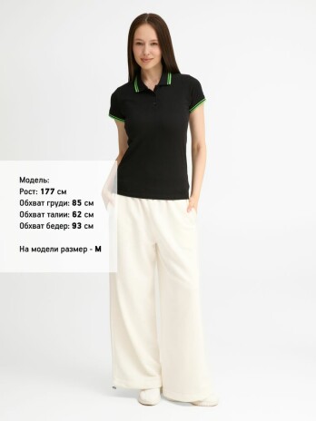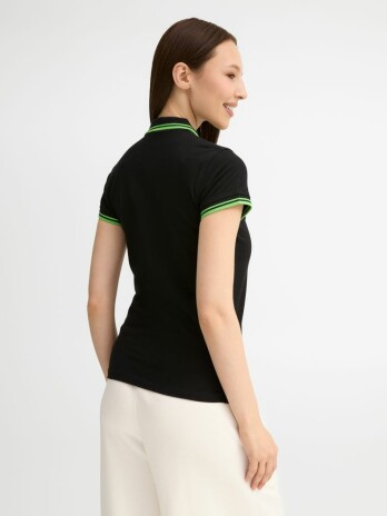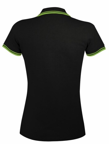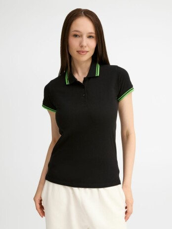 - Рубашка поло женская Pasadena Women 200 с контрастной отделкой, черная с зеленым