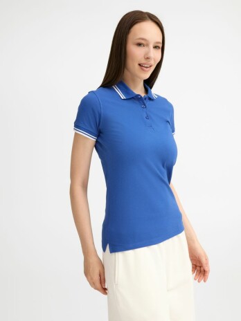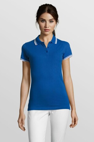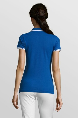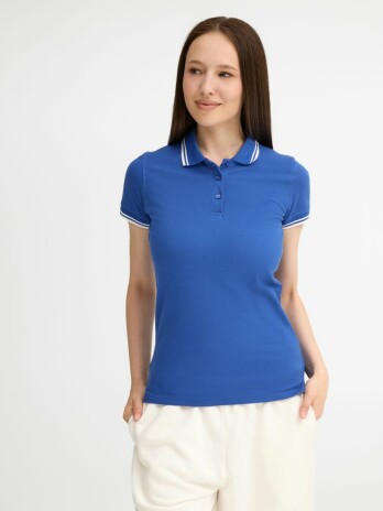 - Рубашка поло женская Pasadena Women 200 с контрастной отделкой, ярко-синяя с белым