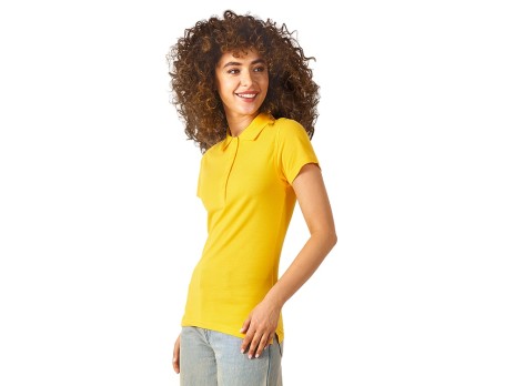 Женская рубашка-поло First. Воротник 1х1. Обшивка внутри воротника. Мужская и детская модели с 2 пуговицами, женская - с 4 пуговицами. Пуговицы с гравировкой в тон. Пике, 100% хлопок. 160 г/м2.