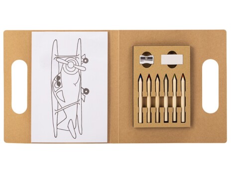 - Комплектность - блокнот для рисования, цветные карандаши - 6шт, точилка, ластик