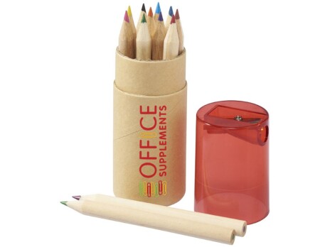 Набор из 12 маленьких карандашей в картонном стакане с точилкой.