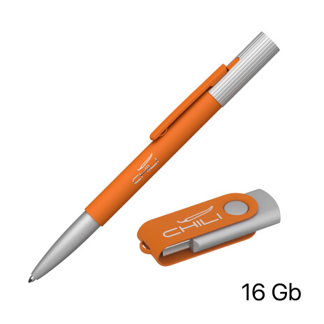 - Набор ручка "Clas" + флеш-карта "Vostok" 16 Гб в футляре, оранжевый, покрытие soft touch оранжевый