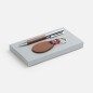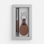 - Материал: ручка - металл, нижняя часть - дерево, орех; брелок - дерево, сапелли; металл; коробка - картон