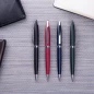 Ручка в благородном матовом прочтении — символ роскоши и утонченного вкуса. Она легко может стать самостоятельным бизнес-подарком.Контрастное сочетание хромированных элементов с матовыми базовыми оттенками активно используется промышленными дизайнерами в концептах современных продуктов - от смартфонов до автомобилей.Хромированная зеркальная подложка на корпусе позволяет гармонично вписать выгравированный логотип в дизайн ручки. • Pantone, близкий к 7623С.• Металлический корпус и клип. • Поворотный механизм подачи стержня.• Пулевидный пишущий узел 1.0 мм.• Длина линии письма 1500 м.• Цвет чернил синий.• Сменный стержень Parker Type.• Виды нанесения: лазерная гравировка, тампопечать.