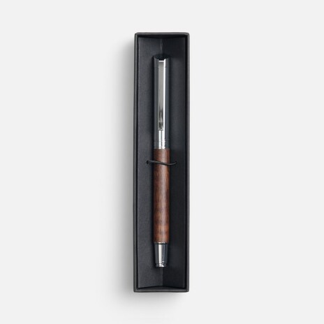 Роллер Waldo — сочетание элегантности и надежности. Корпус роллера выполнен из хромированного металла и дополнен ореховым деревом, что придает изделию неповторимый теплый оттенок и естественную текстуру.