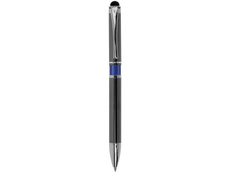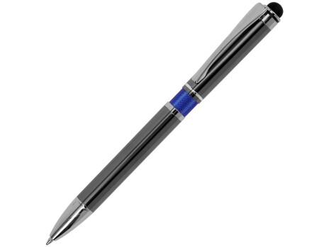 Шариковая ручка оснащена стилусом на кончике корпуса, который совместим со всеми современными смартфонами и планшетами. Корпус цвета оружейной стали — идеальный вариант для гравировки, которая вскрывается серым матовым цветом и очень органично выглядит на ручке и красиво сочетается с цветной вставкой на корпусе. - синие чернила - стилус - яркая цветная вставка