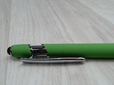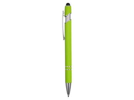 - Ручка металлическая soft-touch шариковая со стилусом «Sway», зеленое яблоко/серебристый (P)