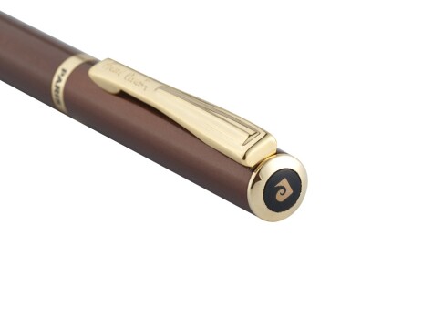 Шариковая ручка Pierre Cardin ECON • Корпус - латунь. Цвет - коричневый; • Отделка - бронзовое покрытие; • Детали дизайна - сталь/позолота Комплектация: • Металлический стержень с логотипом Pierre Cardin на корпусе, с чернилами синего цвета. • Инструкция по использованию ручки. Интригующая композиция, происходящая из эскизов мистера Пьерра Кардена, вдохновила на создание коллекции ручек Pierre Cardin ECON. Овальные формы или более квадратные, классические цвета или своеобразные, выбор остается за Вами. А продуманное до деталей исполнение, облегченный корпус и характерные детали дизайна, выполненные из позолоченной стали, являются неотъемлимой частью каждой ручки данной серии.