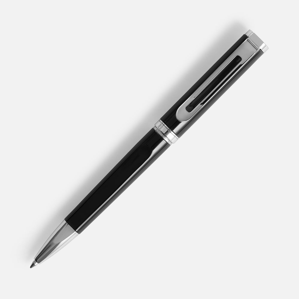 Шариковая ручка эргономичной формы в лакированном корпусе.