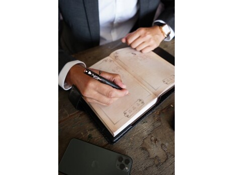 Ручка из мореного дуба изысканный подарок. Морёный дуб уникальный материал, на создание которого природой затрачены тысячи лет. Он добывается из глубин рек и болот. Средний возраст этого материала около 3000 лет. Дерево поистине с богатой историей. Подходит для состоятельных и целеустремленных мужчин.
