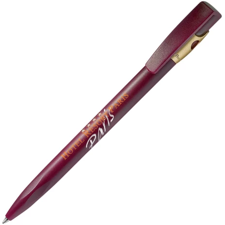 Цвет, близкий к Pantone 195C, Golden, стержень Х-20, чернила Dokumental, синие толщина пишущего узла 1 мм