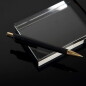 Элегантная ручка Mood - символ благородной роскоши и отражение актуальных тенденций мира дизайна. Ручка обладает приятной тяжестью, свойственной металлическим ручкам, и комфортно лежит в руке благодаря плавной обтекаемой форме корпуса. Широкий клип и корпус обеспечивают большое поле для нанесения логотипа, а высококачественный ABS-пластик гарантирует его стойкость и великолепный внешний вид ручки. Металлические носик и кнопка с зеркальным покрытием "под желтое золото". Процесс обработки металлических деталей проходит под тщательным индивидуальным котролем, что гарантирует гладкость и безупречный блеск покрытия. Цвет корпуса, близкий к Pantone Black C. Стержень Plastic Parker type, пишущий узел 1.0 мм, синие чернила Dokumental, до 4000 м письма. Производство : Италия