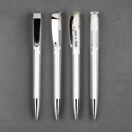 Jona MM Transparent – что скажет такая ручка с вашим логотипом? Прозрачный корпус ручки – вы ведёте бизнес чисто, прозрачно, честно. Блестящий металл наконечника и клипа ручки – ваш бизнес крепкий и устойчивый с блестящими перспективами развития.