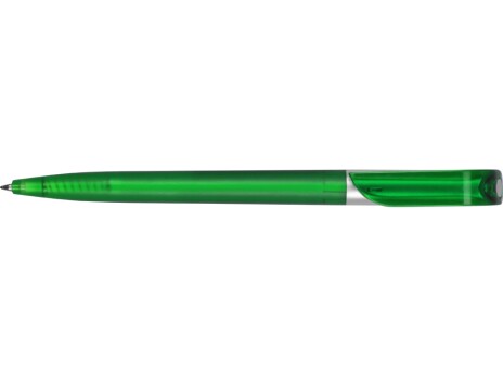 Оригинальная шариковая ручка с поворотным механизмом. Прекрасно подойдет в качестве промо-сувенира на презентации. Широкий клип оригинальной формы. На клип и корпус возможно нанесение логотипа вашей компании.