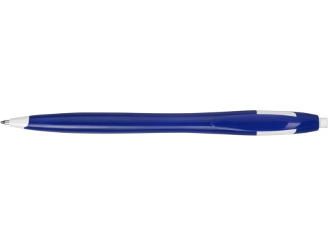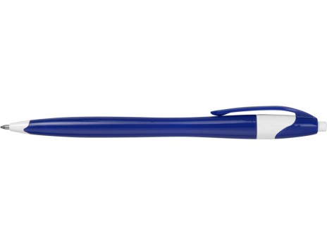 Простая, но стильная пластиковая ручка с цветным корпусом и белыми вставками на носике, кнопке и под клипом. Белые вставки делают ручку более заметной, не отвлекая от рекламной информации на ее корпусе.