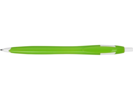 Простая, но стильная пластиковая ручка с цветным корпусом и белыми вставками на носике, кнопке и под клипом. Белые вставки делают ручку более заметной, не отвлекая от рекламной информации на ее корпусе.