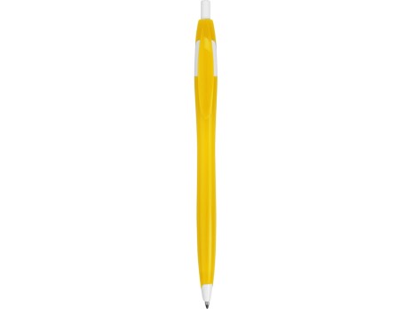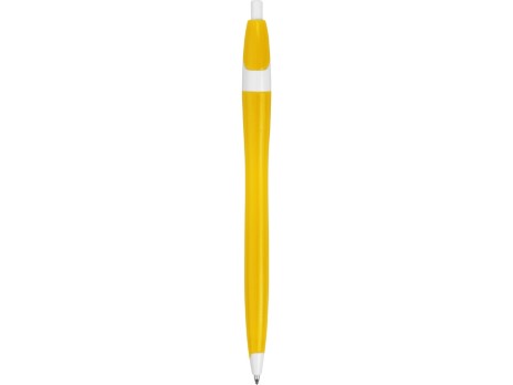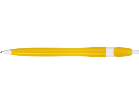 Простая, но стильная пластиковая ручка с цветным корпусом и белыми вставками на носике, кнопке и под клипом. Белые вставки делают ручку более заметной, не отвлекая от рекламной информации на ее корпусе.