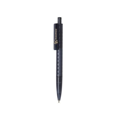Шариковая ручка X3 сочетает в себе экологичность и функциональность. На 84% состоит из переработанного поликарбоната, сертифицированного GRS (Global Recycle Standard). Сертификация GRS гарантирует полный контроль всей цепочки поставок переработанных материалов. Шариковая ручка заправлена синими чернилами Dokumental®, которых хватит, чтобы прочертить линию до 1200 м! Толщина письма — 1 мм. Благодаря нажимному механизму ручку удобно брать с собой, не боясь испачкать сумку или карман. Широкий клип создан для эффектного брендирования.