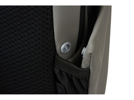 Городской рюкзак из плотной и мягкой экокожи имеет элегантный и продуманный до мелочей дизайн. Внутри расположен карман для ноутбука и органайзер. Наружный карман с эластичной вставкой расширяется и фиксируется кнопкой. Мягкая сетчатая спинка обеспечивает дополнительный комфорт. Регулируемые по длине лямки подойдут для любого пользователя. Нанесение на съемном шильде. Нетканый мешок в комплекте.