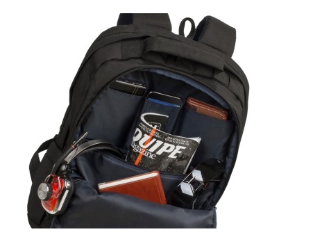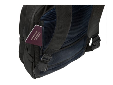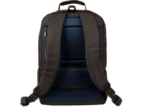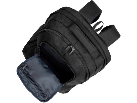 Рюкзак для ноутбука до 17''. • Многофункциональный рюкзак для профессионалов, идеально подходит для деловых поездок и туристических путешествий. • Изготовлен из плотного синтетического материала и имеет утолщенные стенки для лучшей защиты ноутбука от случайных ударов и царапин, а также от пыли и влаги. • Основное отделение для ноутбука с вертикальной загрузкой, имеет мягкие стенки и ремень для надежной фиксации ноутбука до 17". • Просторная секция на молнии для хранения книг и документов. • Дополнительное внутреннее отделение для планшета до 10.1". • Два внешних передних кармана на молнии. Один для хранения аксессуаров, зарядного устройства. Второй оборудован панелью-органайзером для хранения визитных карт, авторучек, смартфона. • Двойная застежка молния для удобного доступа к устройству. • Удобная мягкая ручка для переноски и наплечные ремни со смягчающими подкладками помогут чувствовать себя комфортно в самом долгом путешествии. • Сетчатый материал задней стенки рюкзака обеспечивает циркуляцию воздуха для максимального комфорта вашей спины. • На задней стенке имеется ремень крепления к багажной сумке и скрытый карман на молнии для паспорта, бумажника. • Два боковых кармана для ёмкостей с водой. • Специальная система крепления ремешков на липучке.