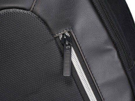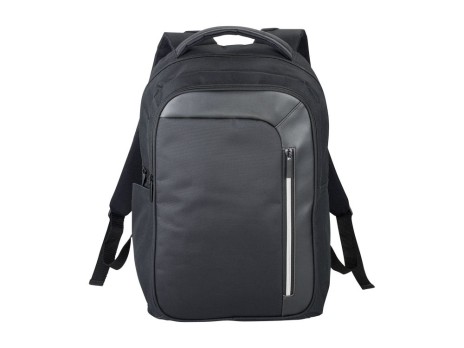 Рюкзак Vault для ноутбука 15.6" с защитой RFID. Изящный, современный рюкзак для ноутбука 15,6 " с большим передним карманом на молнии с карабином для ключей, и скрытым карманом с защитой RFID, чтобы защитить ваши карточки и паспорт от кражи личных данных. Большое основное отделение вмещает ноутбук 15,6" и специальный карман для IPad или планшета. Плотная спинка. Передняя вертикальная молния разработана, чтобы дать вам быстрый доступ к переднему карману. 2 дополнительных боковых кармана для большего места, регулируемые, мягкие ремни рюкзака позволят прикрепить к ним дополнительные аксессуары. Ручка вверху и стропа для крепления к чемодану. 600D полиэстер с акцентами из ПУ винила.