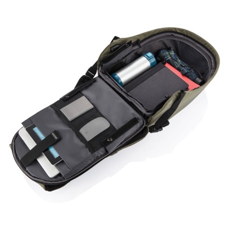 Коллекция Bobby Hero — это новое поколение антикражных рюкзаков. Новые модели подарят вам чувство безопасности, беззаботности и организованности в путешествии. Такие основные функции, как защита от порезов, скрытые молнии и потайные карманы, сохранят ваши вещи в безопасности во время ваших поездок на работу или в путешествие. Как и в предыдущих моделях в Bobby Hero интегрирован удобный USB порт для подзарядки ваших гаджетов, водоотталкивающая ткань, светоотражающие полосы и багажный ремень. Внутри предусмотрены мягкие отделения для ноутбука диагональю 13,3", для планшета диагональю до 12,9" и основное отделение для всего самого необходимого. Более того, новая модель — экологичная, она сделана из переработанных пластиковых бутылок. Зарегистрированный дизайн.