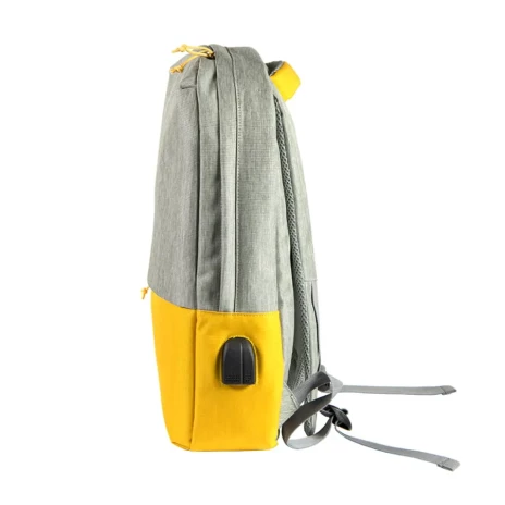 Beam - яркий, практичный и комфортный рюкзак на каждый день. Выбери свой цвет! Основной цвет: близкий к Pantone 421 C, нижняя часть: цвет, близкий к Pantone 124 C · Основная ткань: 100% полиамид, подкладка: 100% полиэстер · Объём: 13 литров · Вмещает ноутбук 15,6" Описание: · Прочный и водоотталкивающий материал · Основной отдел на молнии с двумя бегунками и планкой, защищающей от попадания влаги внутрь · Наружный удобный карман -органайзер на молнии · Внутри укрепленный отдел для ноутбука с защитной тесьмой на липучке · USB разъем для подзарядки вашего устройства (внутри рюкзака в специальном кармане на молнии расположены кабель для соединения с power bank и провод с разъемом мини-джек 3,5 мм для наушников) · Эргономичные лямки и ручка рюкзака · Лямки прошиты дополнительными стропами в быстро изнашиваемых местах, которые можно отрегулировать по длине и зафиксировать пластиковыми крепежами · Упаковка: прозрачный пакет
