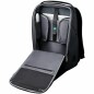 В конструкции рюкзака все продумано до мелочей: от комбинации высокопрочных, устойчивых к порезам и трению водоотталкивающих материалов до специального кармана для аккумулятора, в который выведен USB-кабель, соединенный с портом на внешней стороне рюкзака для легкого подключения к смартфону. Рюкзак закрывается на водонепроницаемую молнию, которую можно зафиксировать с помощью кодового замка.
