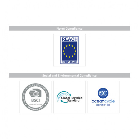 Ткань получена из пластика (бутылок) собранного в прибрежных зонах, наиболее подверженных загрязнению. Благодаря прозрачной производственной цепочке путь пластика от места сбора до фабрики легко отследить. Сертификат OCEANCYCLE является знаком качества, он признан во всем мире и подтверждает происхождение сырья.