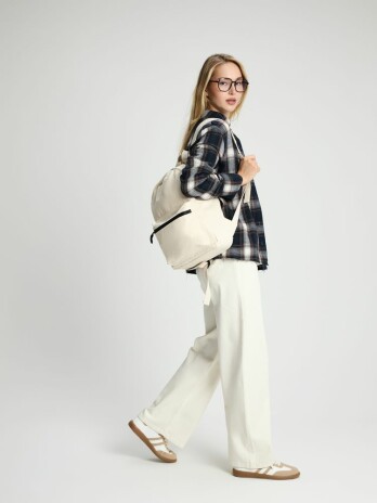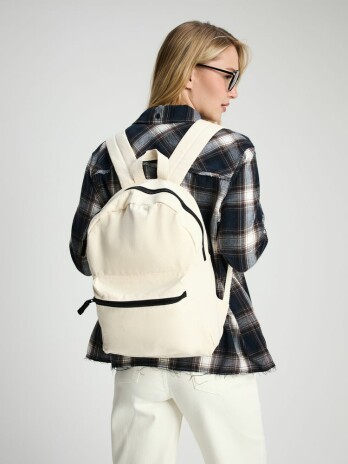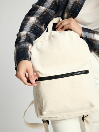 Легкий рюкзак в экостиле — из плотного неокрашенного хлопка с контрастными деталями.