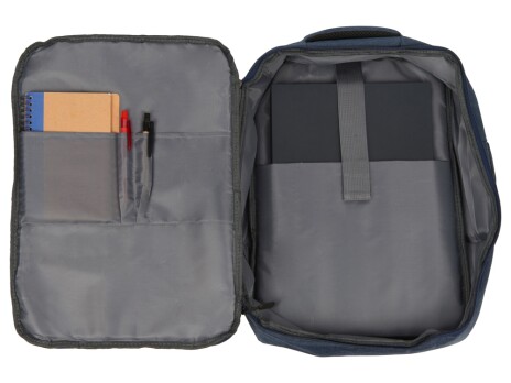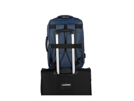 Легкий, удобный и вместительный в деловых поездках. Рюкзак трансформируется в деловую сумку благодаря второй ручке. Основное отделение с органайзером имеет глубину 11 см, что позволяет хранить в нем одежду и все необходимое для командировок. Для большего удобства рюкзак оснащен USB выходом и ремнем для крепления к чемодану. Лямки регулируются по длине.
