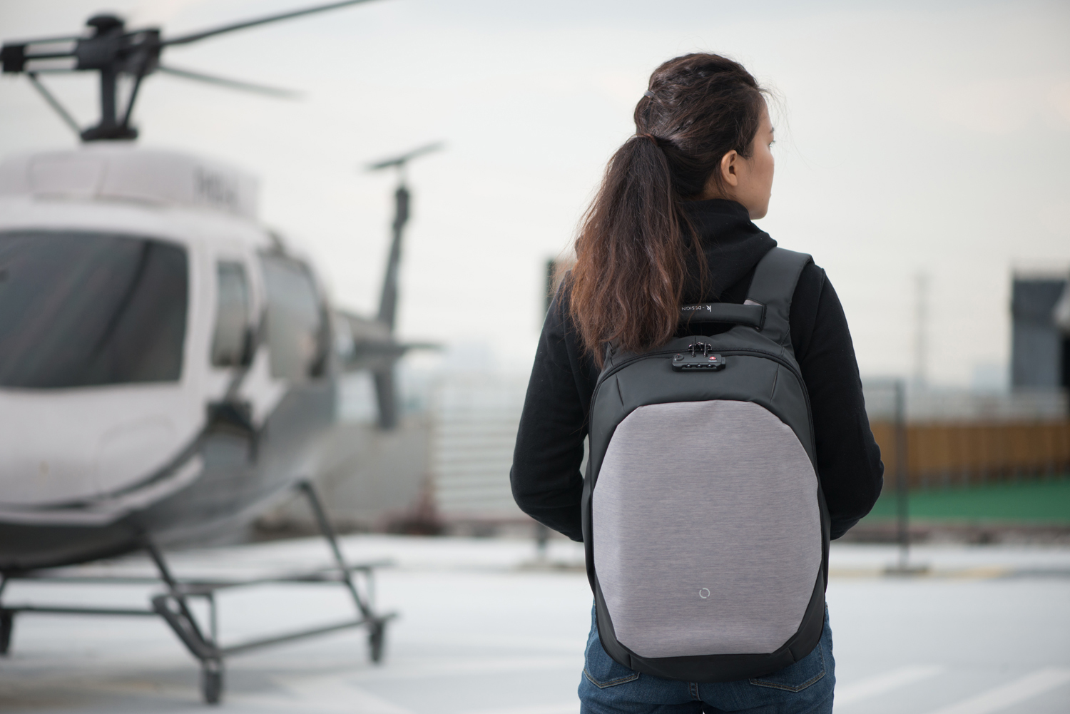 Вместительный рюкзак для путешественников ClickPack из комбинации светло-серого и черного цветов, обладатель премий Good Design Award 2017, Red Dot Design Award 2018, iF Design Award 2018, International Design Excellence Award. Размер рюкзака 46х34х16 см, объем 17,3 л, вес 1040 гр. Сделан из прочного устойчивого к трению водоотталкивающего многослойного полиэстера, с двухслойной защитой от дождя и не требующего специального ухода. Конструкция достаточно жесткая, не деформируется. Детально продуманная организация отделений позволяет грамотно распределить вес. Самые тяжелые предметы располагаются ближе к спине, например, в отделении размером 35х27,5х3 см для ноутбука диагональю до 15,6” и в кармане размером 13,5х25 см для планшета диагональю до 10”. Благодаря плотным перегородкам и эластичным фиксаторам ноутбук и планшет надежно фиксируются и не перемещаются при ходьбе. Специальная анатомическая конструкция и вентилируемая мягкая спинка снижают нагрузку на плечи и спину, вес рюкзака воспринимается на 20-25% легче, чем при использовании стандартных моделей рюкзаков. Конструкция рюкзака позволяет раскрыть его на 180°, чтобы аккуратно уложить в рюкзак много различных предметов. Дополнительно в основном отделении расположены еще 8 карманов различного функционала. 6 открытых карманов под ручки и различные мелочи, 1 карман на молнии размером 9х16 см и карман на липучке для powerbank, в который приходит USB-кабель системы зарядки K EasyCharging, соединенный с USB-портом в борту на внешней стороне рюкзака для легкого подключения к смартфону. Рюкзак закрывается на двойную укрепленную молнию YKK, которую можно зафиксировать с помощью кодового замка TSA007 с функцией таможенного досмотра. Широкие и прочные лямки крепятся к небольшому тканевому борту, что позволяет рюкзаку как бы обхватывать вашу спину. В одном из бортов расположен USB-порт, а в другом - чехол для зонта или бутылки с водой, который при использовании фиксируется специальным креплением. На правой лямке рюкзака находится easy access карман размером 12х6 см на молнии, на левой - открытый карман 10х5 см. На внешней стороне рюкзака в стыке серого и черного цветов спрятался треугольный карман на молнии размером 16х9 см с застежкой фастекс для ключей, которая позволяет вам легко отстегнуть/пристегнуть ключи. На спинке рюкзака расположен внешний потайной карман размером 16х28 см на молнии. Для его защиты достаточно того, что он вплотную прилегает к вашей спине и вытащить что-то из него без снятия рюкзака невозможно. В дополнение к вышеперечисленным средствам защиты рюкзак ClickPack оснащен стальным тросом, которым можно обхватить неподвижный предмет и затем зафиксировать в кодовом замке. Сверху расположена ручка, за которую при необходимости удобно нести рюкзак в руках или закрепить на выдвижной ручке чемодана. На углах рюкзака размещены светоотражающие элементы, которые в темное время суток равномерно отсвечивают практически на 360° и делают вас заметными на расстоянии до 100 метров.