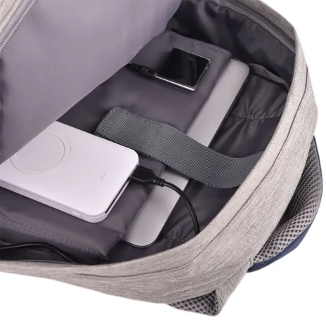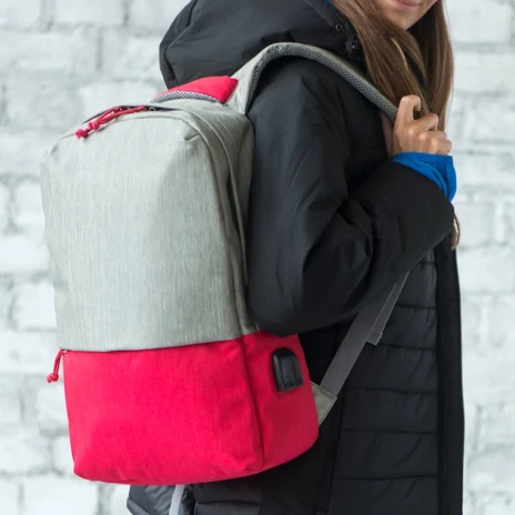 Beam - яркий, практичный и комфортный рюкзак на каждый день. Выбери свой цвет! Основной цвет: близкий к Pantone 421 C, нижняя часть: цвет, близкий к Pantone 2189 C · Основная ткань: 100% полиамид, подкладка: 100% полиэстер · Объём: 13 литров · Вмещает ноутбук 15,6" Описание: · Прочный и водоотталкивающий материал · Основной отдел на молнии с двумя бегунками и планкой, защищающей от попадания влаги внутрь · Наружный удобный карман -органайзер на молнии · Внутри укрепленный отдел для ноутбука с защитной тесьмой на липучке · USB разъем для подзарядки вашего устройства (внутри рюкзака в специальном кармане на молнии расположены кабель для соединения с power bank и провод с разъемом мини-джек 3,5 мм для наушников) · Эргономичные лямки и ручка рюкзака · Лямки прошиты дополнительными стропами в быстро изнашиваемых местах, которые можно отрегулировать по длине и зафиксировать пластиковыми крепежами · Упаковка: прозрачный пакет
