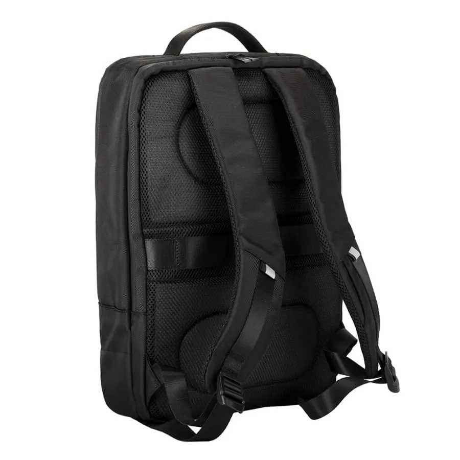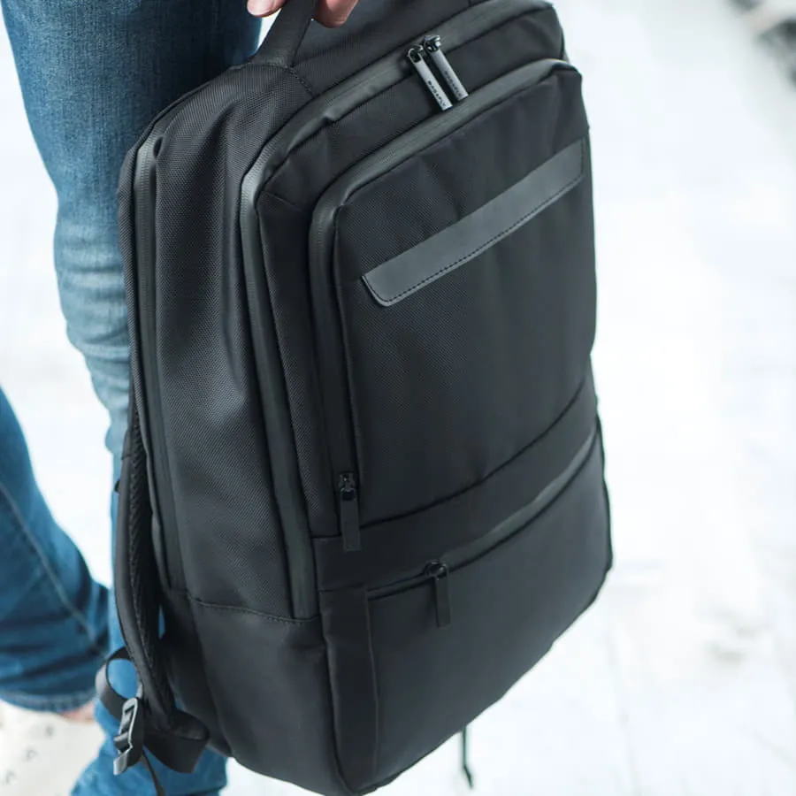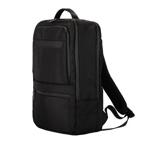 Основная ткань: цвет, близкий к Pantone Black C, подкладка: цвет, близкий к Pantone 2169 C • Основная ткань: 100% полиэстер, подкладка: 100% полиэстер• Объём: 20 литров• Вмещает ноутбук 15,6" Описание:• Сочетание основного прочного водоотталкивающего материала и яркой контрастной подкладки • Два основных отдела с обратной молнией, защищающей от попадания влаги внутрь• Два дополнительных внешних кармана на молнии• Внутри укрепленный отдел для ноутбука с защитной тесьмой на липучке• Специальный RFID карман с системой защиты от несанкционированного считывания персональных данных• Внутренние карманы-сетки и карман-органайзер для дополнительного хранения• Удобная петля из эластичной резинки для термокружки• Специальная стропа на спинке для крепления на выдвижной ручке чемодана• Эргономичная спинка и лямки рюкзака из вентилируемого материала• Укрепленная ручка рюкзака• Карманы для проездных карт на лямках рюкзака• Светоотражатели на лямках рюкзака для обеспечения безопасности• Лямки прошиты дополнительными стропами в быстро изнашиваемых местах, которые можно отрегулировать по длине и зафиксировать пластиковыми крепежами• Брендированные металлические пуллеры Bag Fly• Жаккардовый логотип Bag Fly внутри• Картонный ярлык Bag Fly• Внутрь рюкзака вложена сумка из нетканого материала для хранения • Упаковка: прозрачный пакет